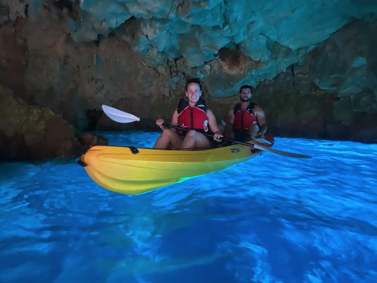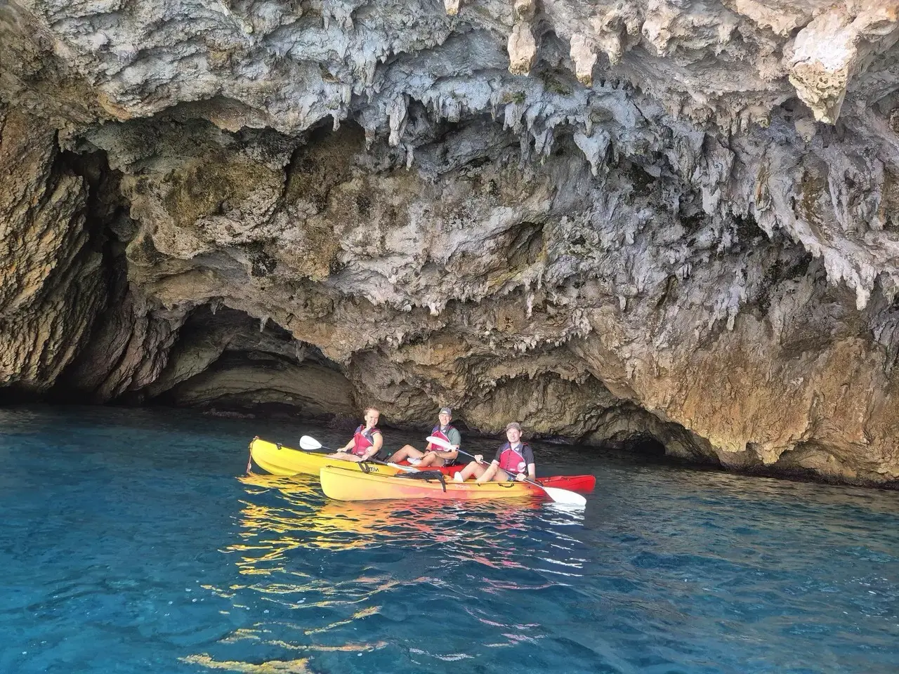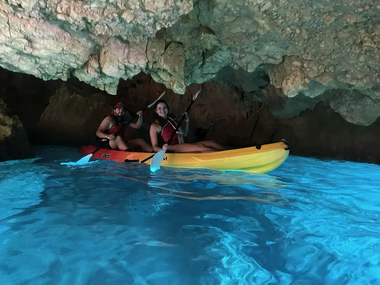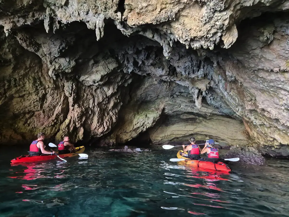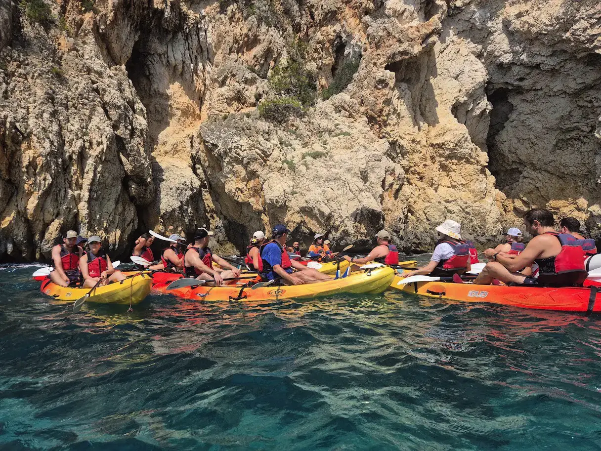 La excursión en kayak de Cala Granadella es una experiencia corta y ágil, ideal para familias y personas con poca o ninguna experiencia en este tipo de embarcaciones. El recorrido es tranquilo y dinámico, con parada en la Cueva del Llop Marí para descansar y estirar las piernas.